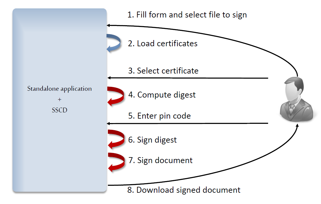 All DSS business logic is embedded inside this application (CAdES, PAdES, XAdES, JAdES, ASiC). This application doesn't require a DSS server.